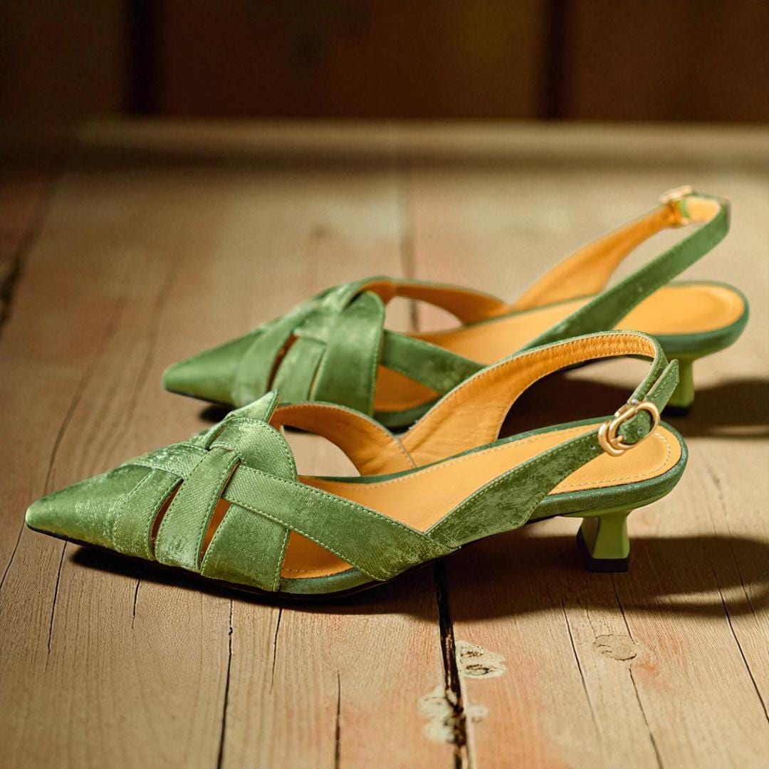 Step into elegance with these women s genuine leather slingback sandals. Featuring a narrow band cross strap design, pointed toe, and low kitten heel, they offer chic style and all-day comfort. Crafted with premium split leather uppers, soft sheepskin lining, and insole for a luxurious feel. The open side vamp and secure buckle strap back add modern flair, while the rubber outsole ensures stability. Perfect for summer dress occasions, these gladiator-style sandals fit true to size and include a subtle 0 3 cm platform for added lift.