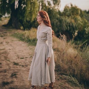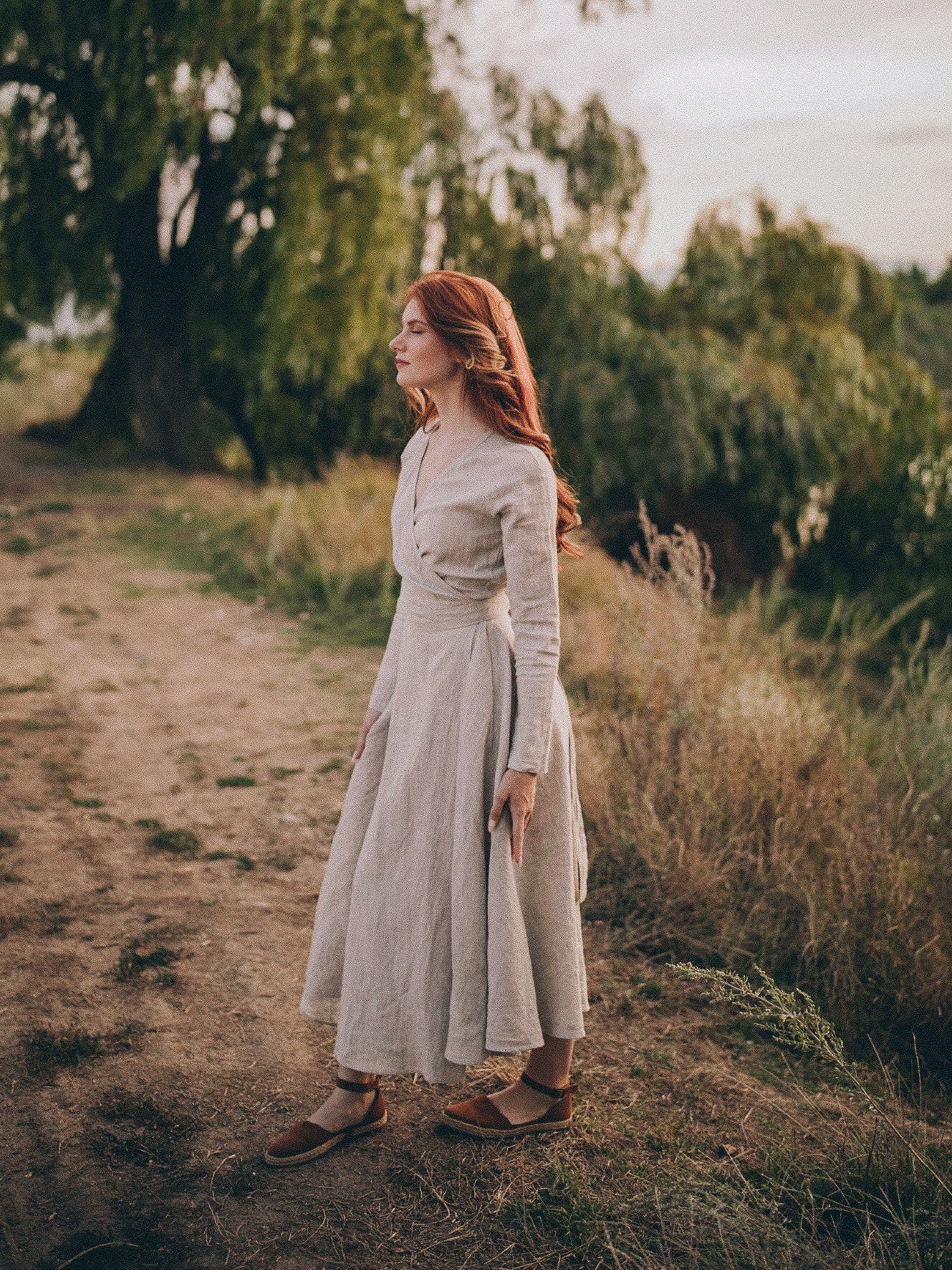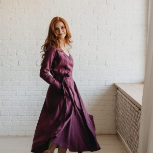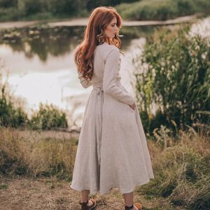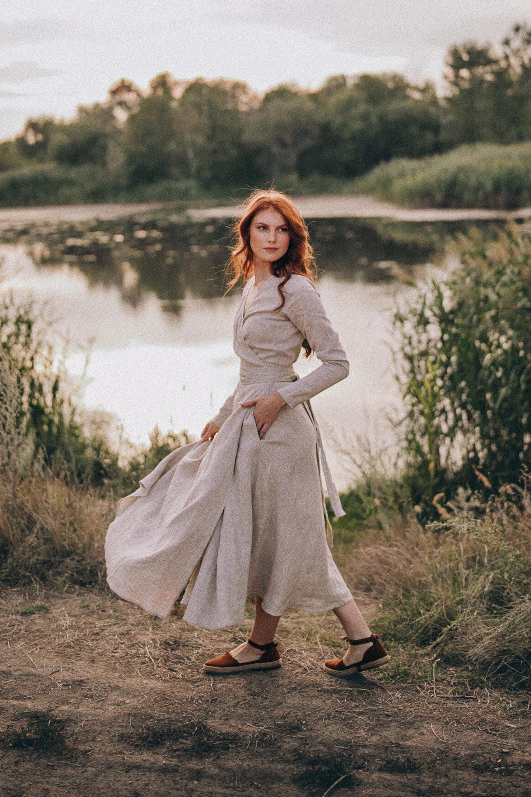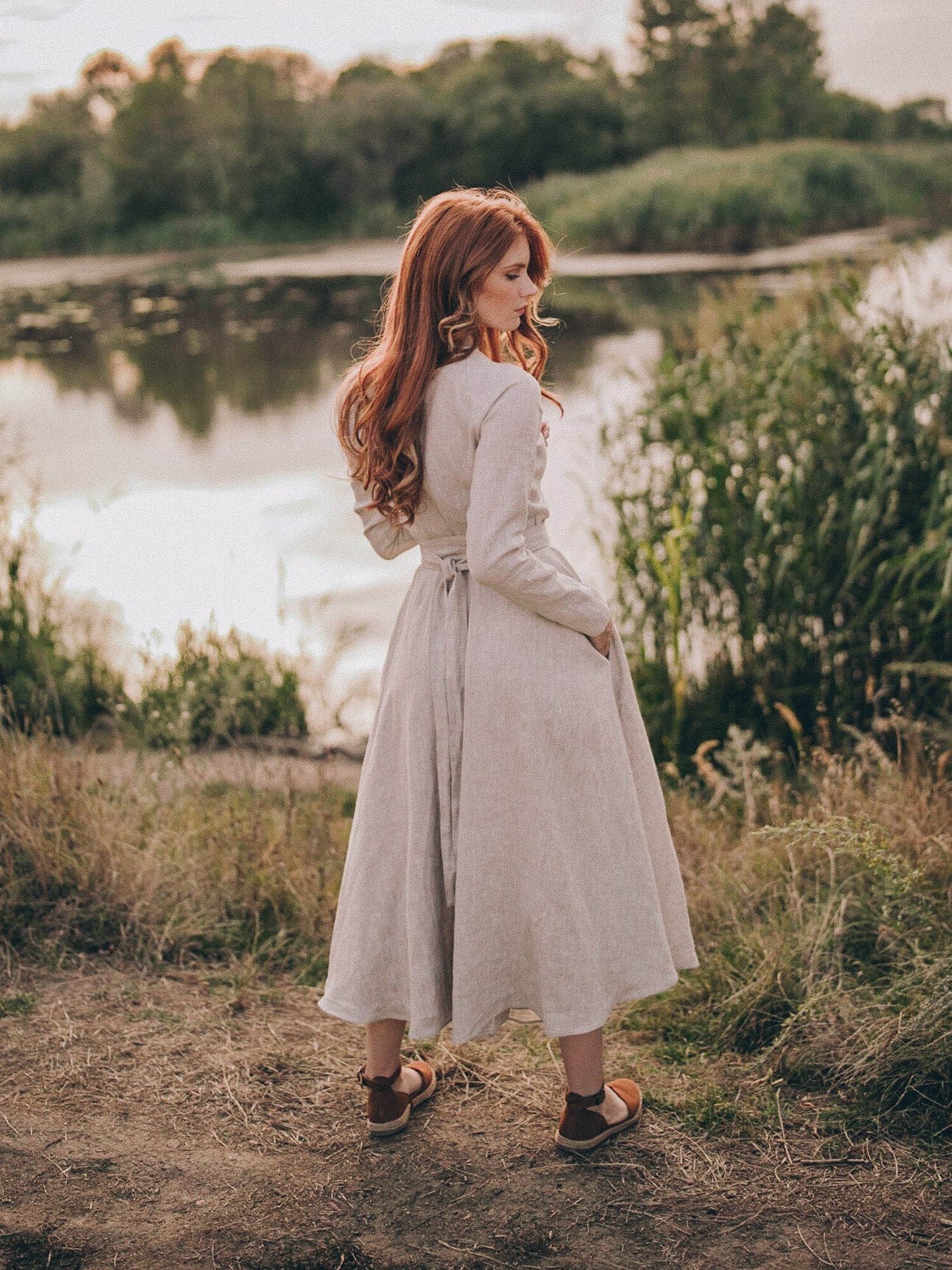 Heavyweight Linen Dress For Women Wrap With Pockets