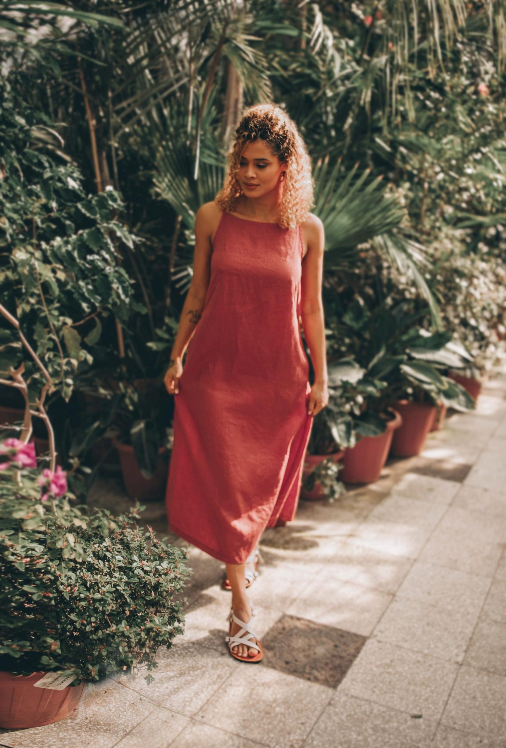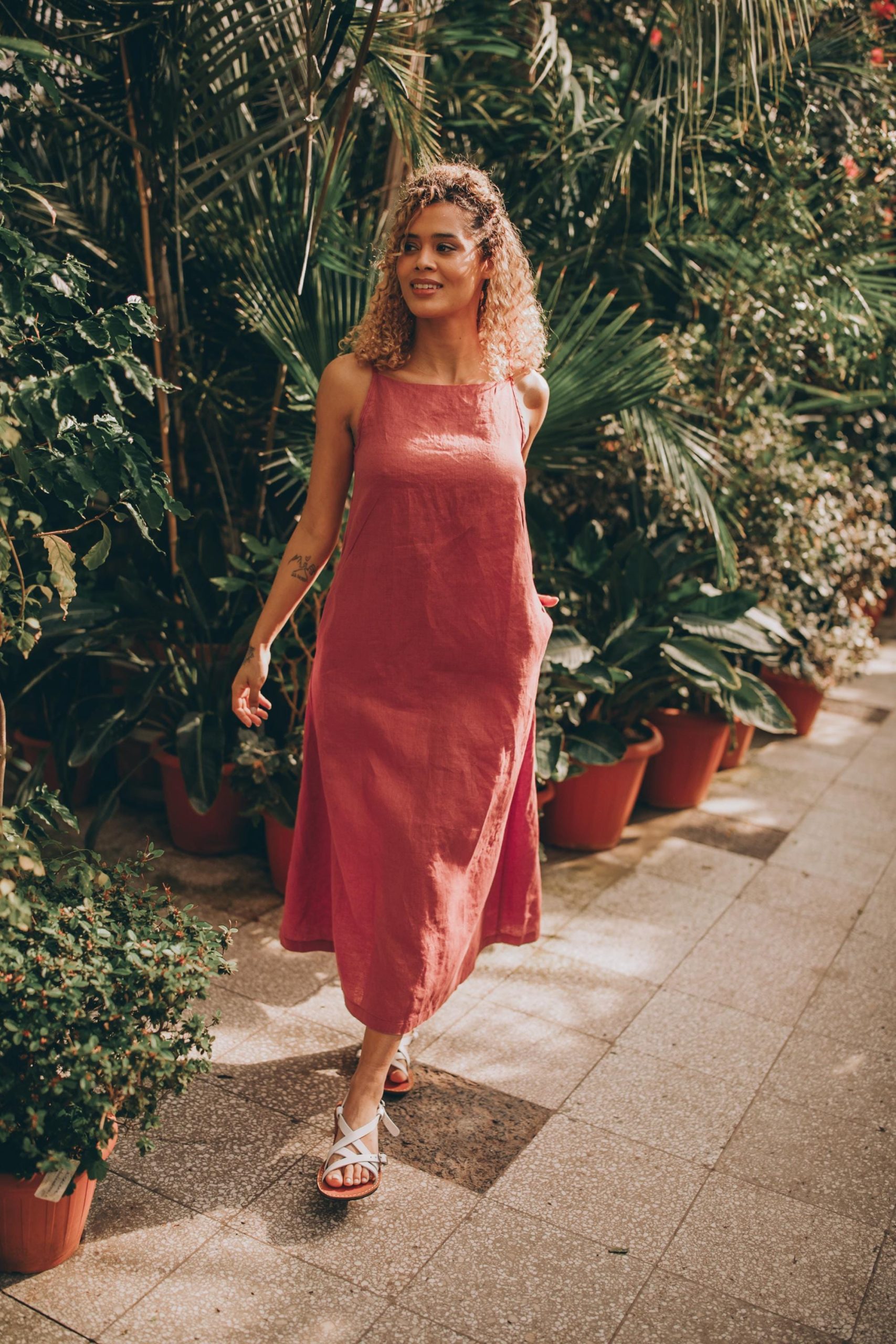 Crafted entirely from natural linen, this midi-length sleeveless dress is a must-have seasonal essential that blends effortless elegance with everyday comfort. Designed with a minimalist aesthetic, it features a beautifully elongated silhouette that drapes gracefully, flattering a variety of body shapes.