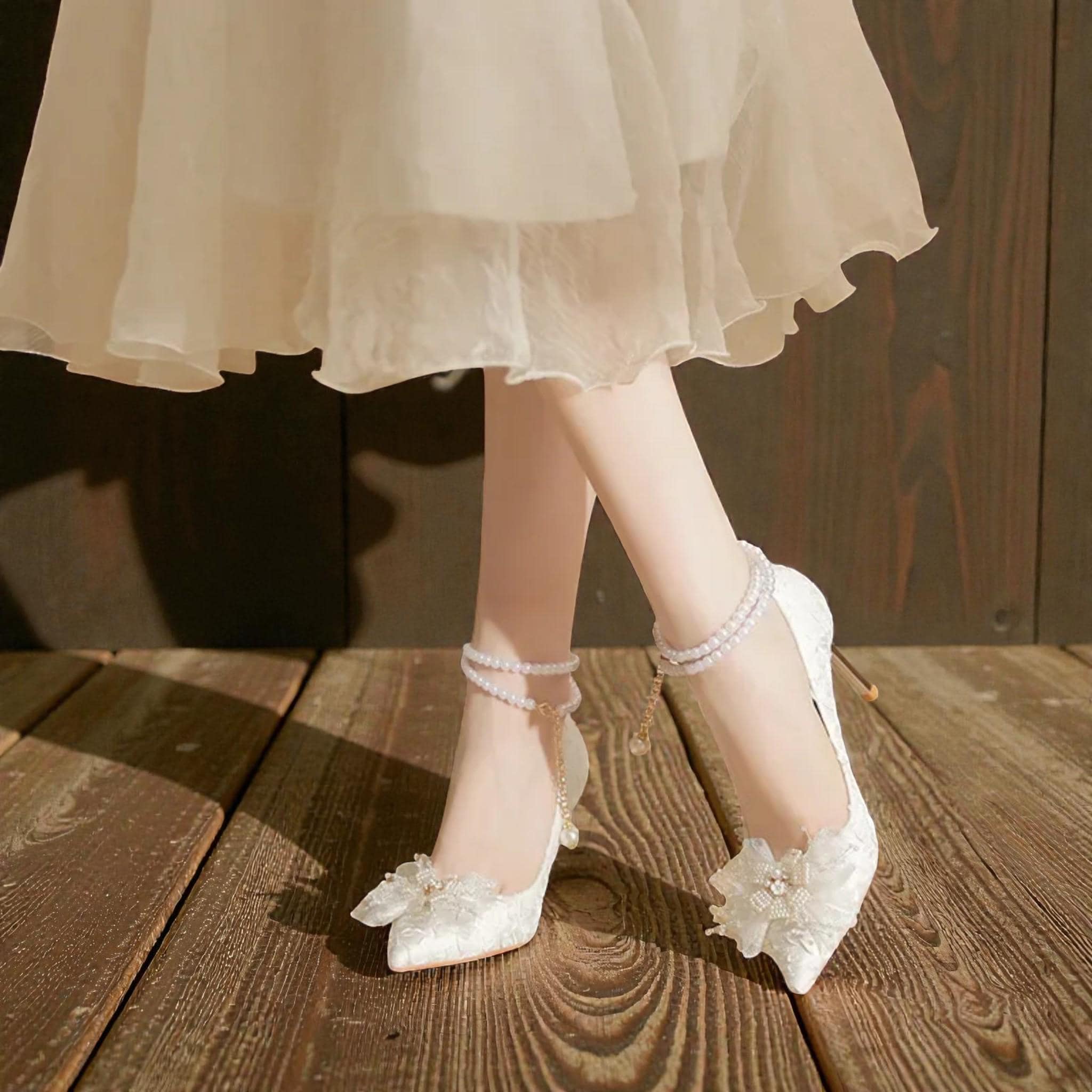 The delicate pearl details add a soft, romantic touch, while the thin high heel enhances your posture and elongates the legs for a graceful, feminine appearance. Lightweight, comfortable, and handmade with care, these heels are perfect for brides seeking classic beauty with modern simplicity.