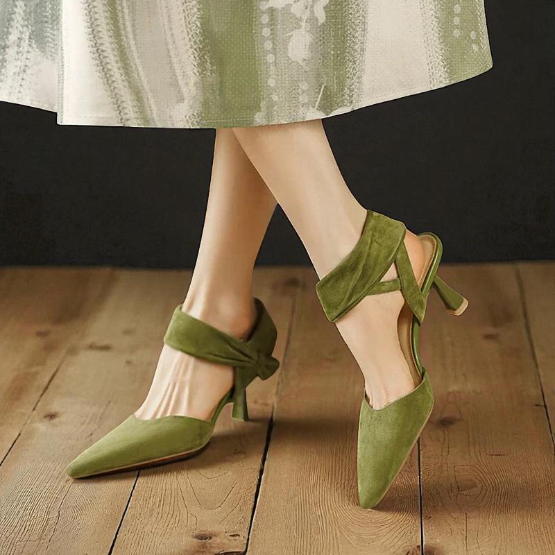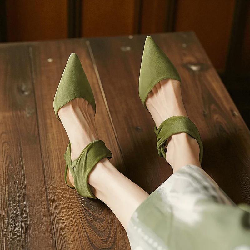 Step out in confidence with these women s kid suede pointed toe sandals, designed with a chic ankle strap and stylish thin 6.5 cm heels. Featuring premium full grain leather insoles and a soft genuine leather lining, they offer elegance and comfort for the office or any classy event. The open side vamp and secure buckle closure add a modern touch, making these sandals perfect for professional or evening wear.
