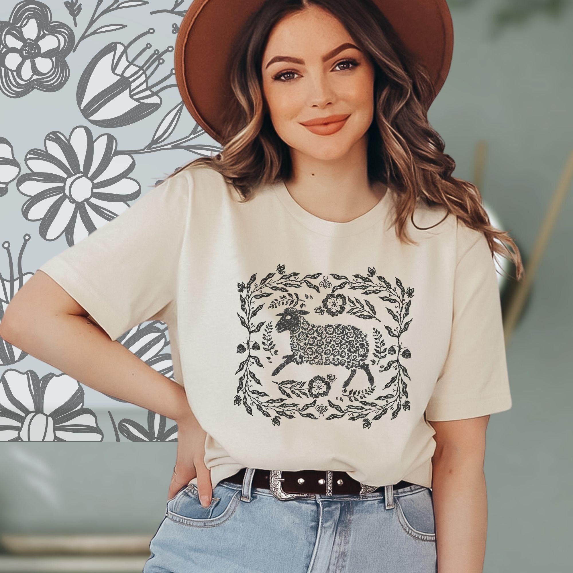 Looking for a unique tee or a special birthday gift t shirt? Look no further! Our vintage style trendy linocut sheep shirt is designed to delight and make you stand out in style. 🎁👕
